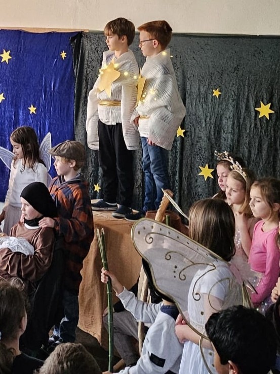 Die Klasse 2c begeisterte ihr Publikum mit ihrem Theaterstück „Der kleine Weihnachtsstern“. Ein Stück mit der Botschaft, dass Vertrauen in sich und andere für eine friedliche Welt so wichtig ist!